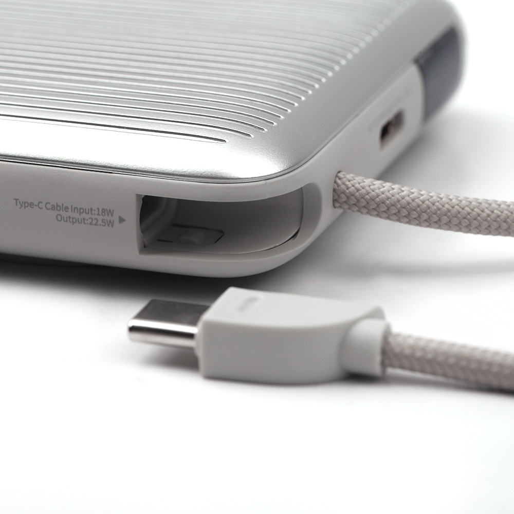 Udgang med indbygget kabel: TYPE-C kabel: 5V⎓3A, 9V⎓2,22A, 10V⎓2,25A, 12V⎓1,67A, 22,5W maks.