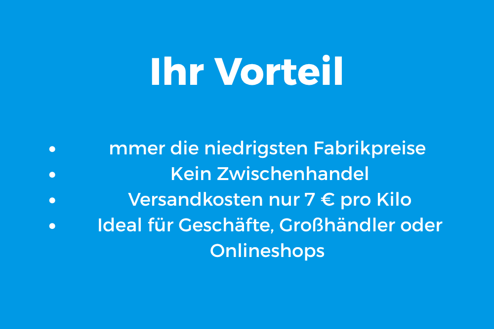 Alle Produkte werden direkt von der Fabrik an unser Lager in den Niederlanden geliefert. So erhalten Sie das Beste aus beiden Welten: Fabrikpreise mit der Geschwindigkeit und Zuverlässigkeit der Lieferung aus den Niederlanden. Perfekt für Unternehmer, Geschäfte oder Online-Shops, die günstig und zuverlässig einkaufen möchten.