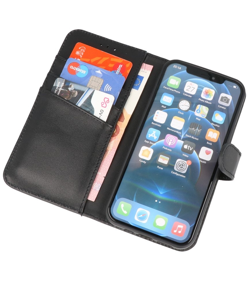 This genuine leather book type phone case for your smartphone is made of a luxurious quality material, the interior has a leather lining. The case has a separate compartment for, for example, credit or debit cards in which you can also store your bills or receipts.