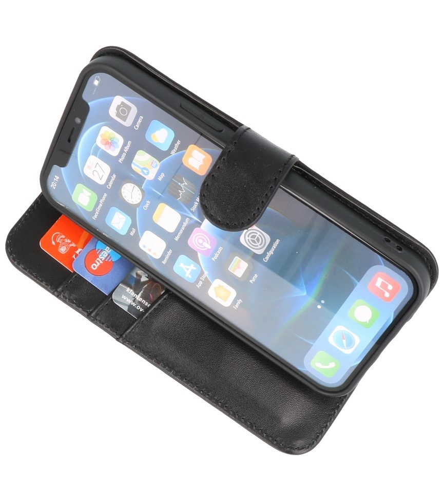 This genuine leather book type phone case for your smartphone is made of a luxurious quality material, the interior has a leather lining. The case has a separate compartment for, for example, credit or debit cards in which you can also store your bills or receipts.