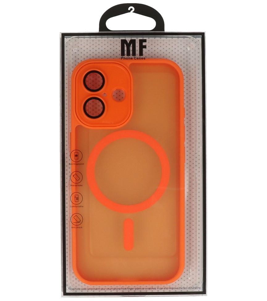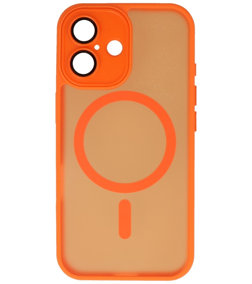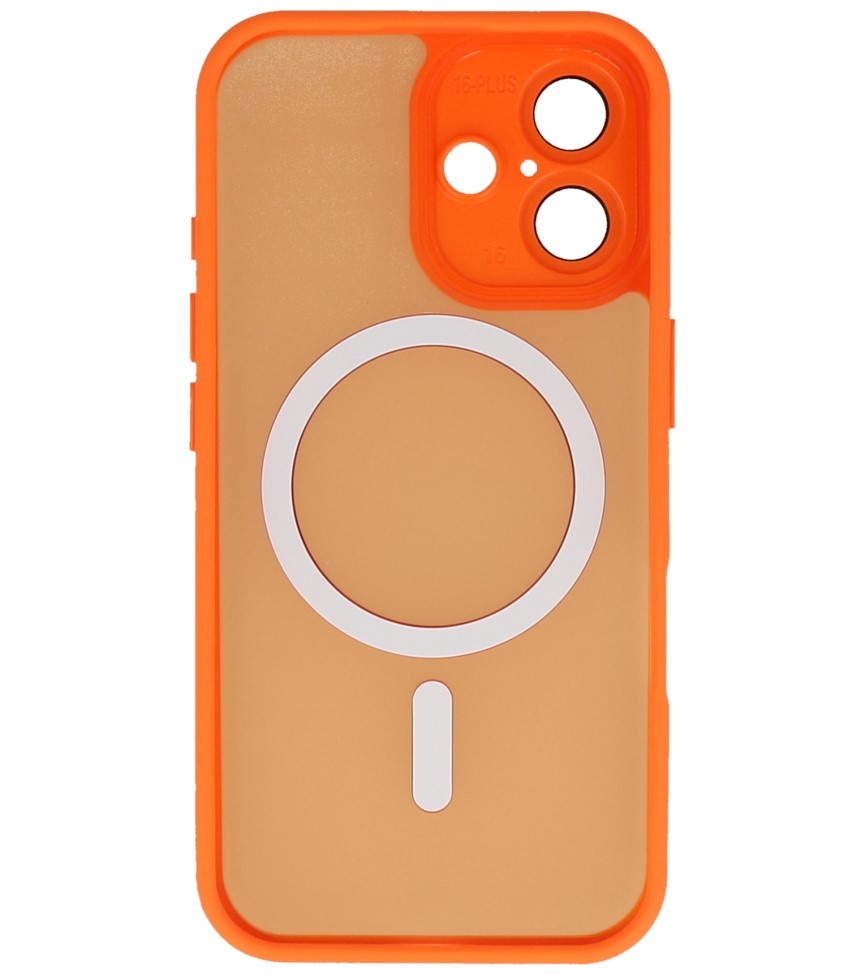 Funda Magsafe mate transparente con protector de cámara para iPhone 16 naranja