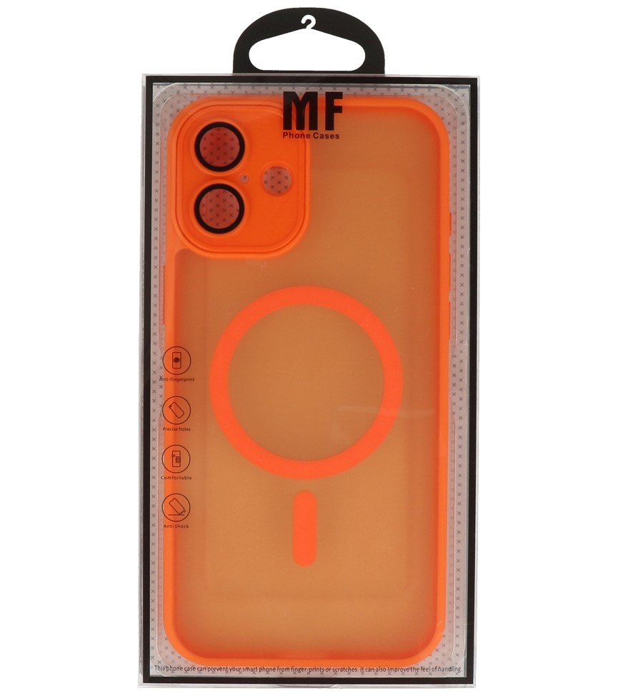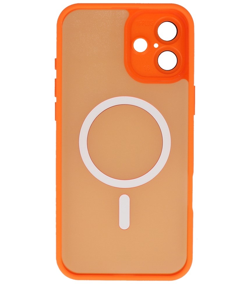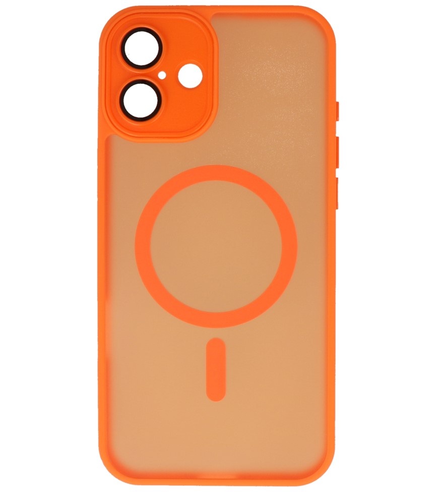 Funda Magsafe mate transparente con protector de cámara para iPhone 16 Plus, color naranja