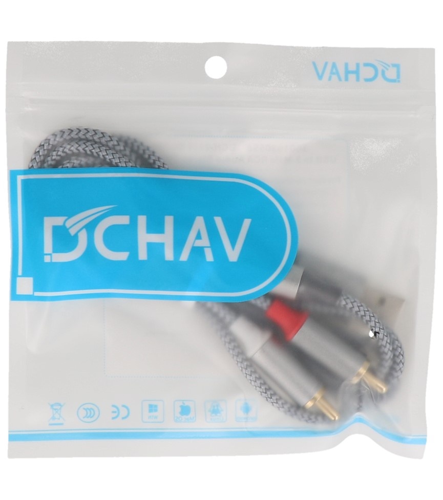 El cable de audio estéreo USB a RCA macho a macho está bien construido con conductores trenzados de cobre para señales de salida de audio confiables.