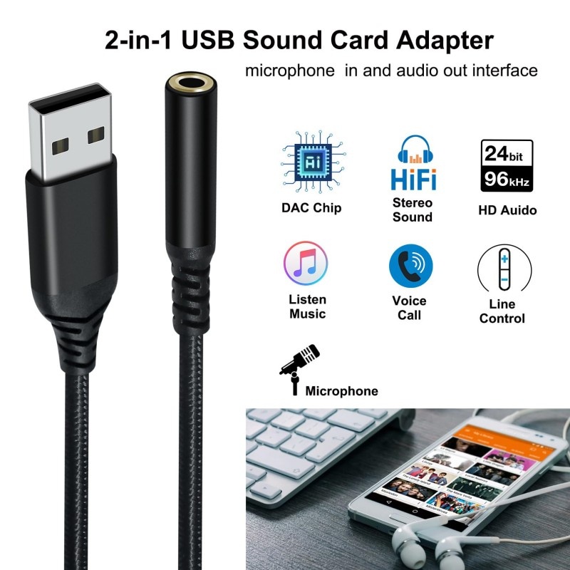 L'adaptateur audio USB pour casque est petit et léger, facile à transporter et adapté à une utilisation dans de nombreux contextes (voyages, travail, vie quotidienne, fêtes, sports).