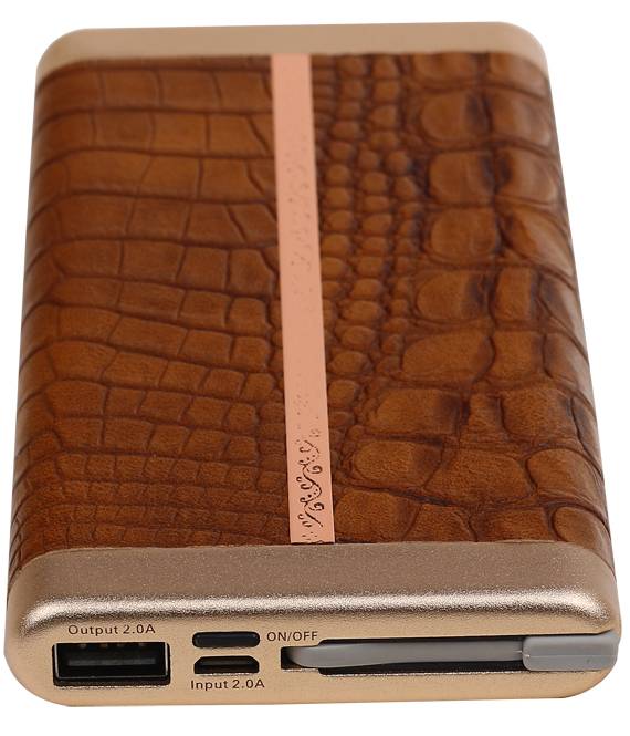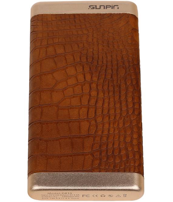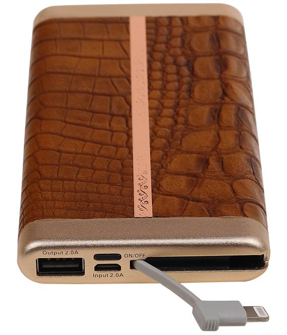 Power Bank D810 met ingebouwd iPhone kabel 10000mAh Bruin