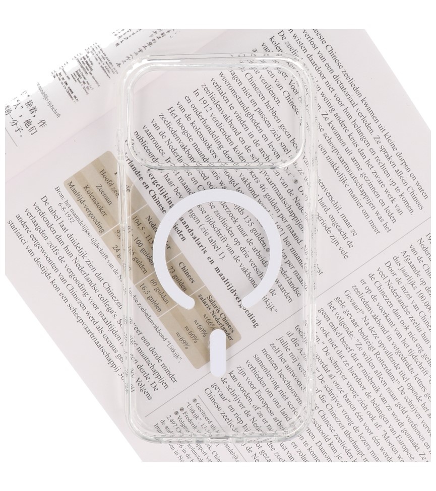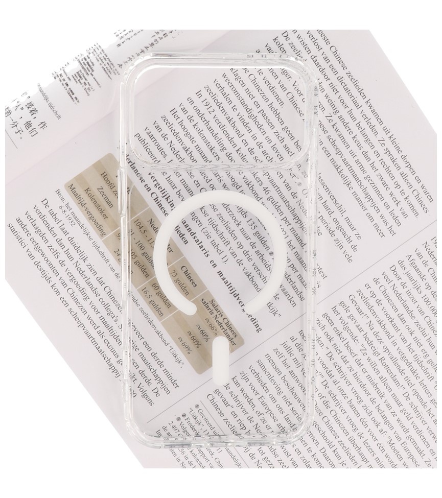 Dit hoesje van hoogwaardig, vergeelbestendig materiaal behoudt zijn transparantie, ook bij blootstelling aan licht en veroudering. Het is kras- en condensatiebestendig, uitgerust met een magneetsysteem voor naadloze compatibiliteit met Magsafe-accessoires, en voorzien van een verborgen airbagcushioning die valschokken opvangt.